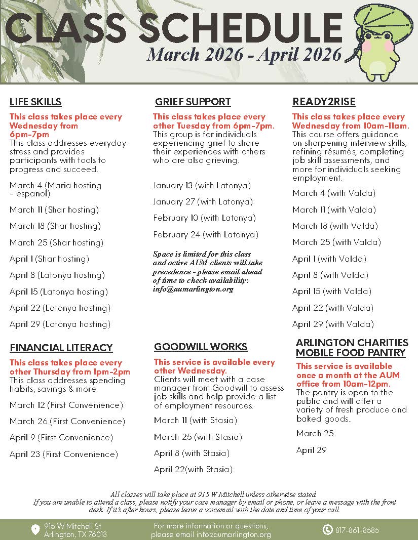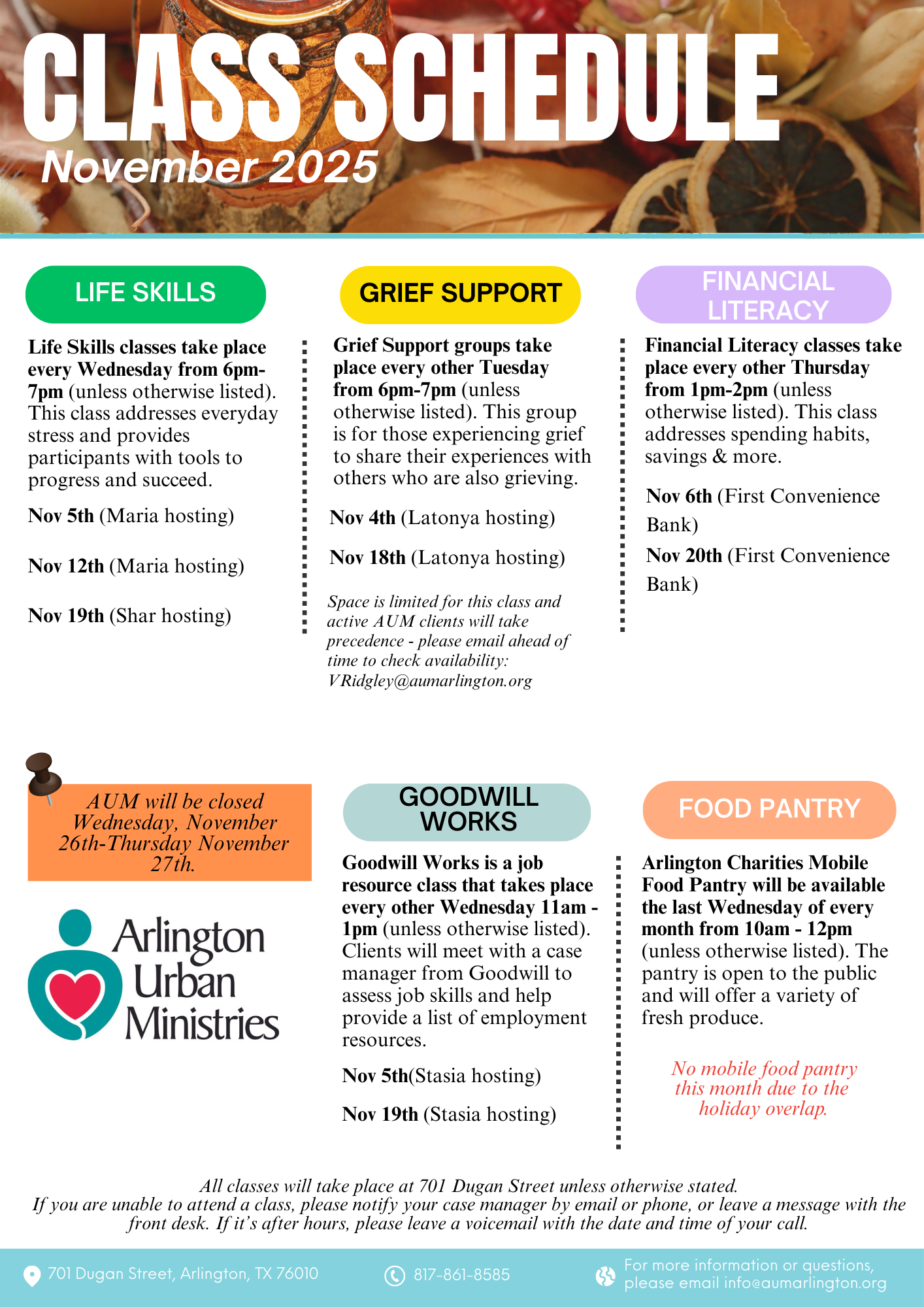 Our classes are designed to bring focus to some of the underlying factors of financial struggles ranging from spending habits to mental health.